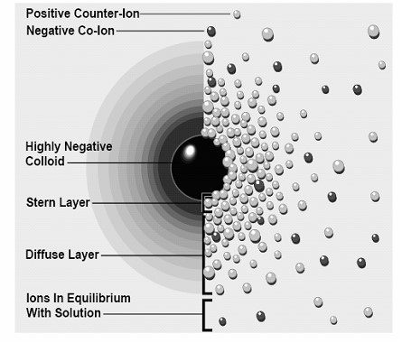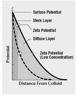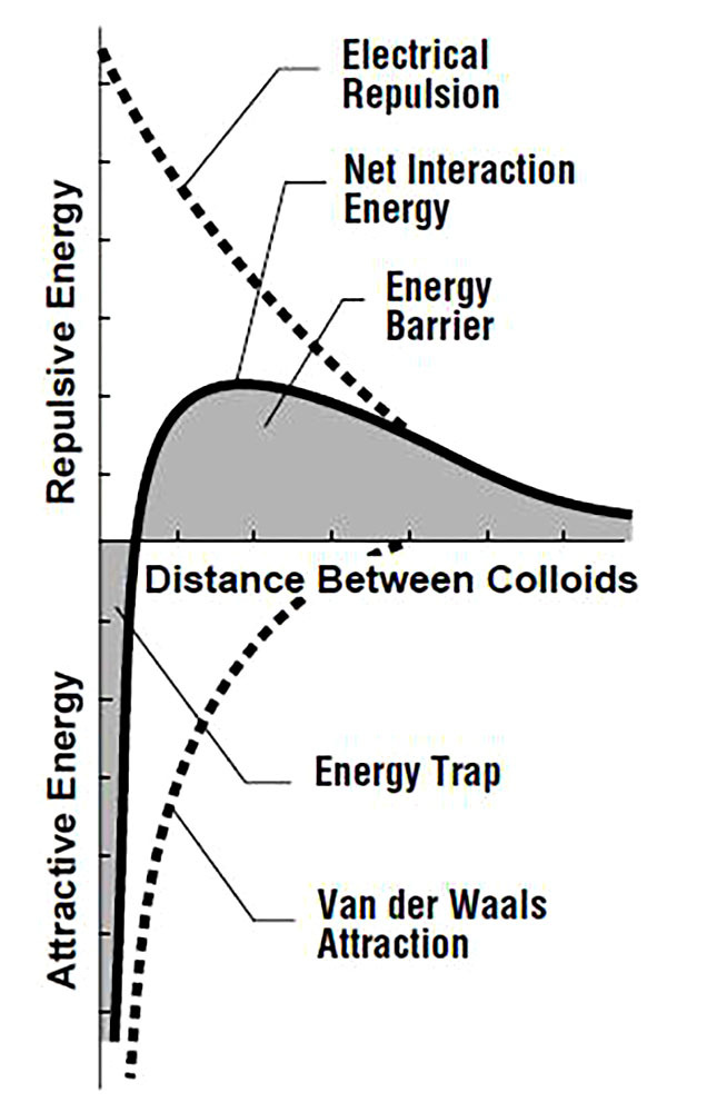 در مورد ذرات واقع در محدوده اندازه کلوئیدی (کمتر از 1µm)، اندازه و بزرگی نیروی بین ذرات تاثیر اساسی بر رفتار سوسپانسیون و رفتار رئولوژیکی آن خواهد داشت. نیروهای موجود در بین ذرات به دو دسته نیروهای جاذبه و نیروهای دافعه تقسیم می شوند. عمده ترین نیروی جاذبه میان ذرات نیروی واندروالس می باشد كه این نیرو به اندازه، شکل ذرات و فاز مایع وابسته است. نیروهای دافعه شامل نیروی دافعه الکترواستاتیک است که این نیرو ناشی از حضور بار در فصل مشترک جامد – مایع است. در واقع بین لایه های مضاعف دو ذره، برهم کنشی ایجاد می شود که به علت همنام بودن بارها این نیرو دافعه خواهد بود. با نزدیک شدن ذرات نیروی دافعه سرانجام در نقطه ای توسط جاذبه واندروالس خنثی می شود. دیگر نیروی دافعه می تواند نیروی دافعه استریک یا ممانعت فضایی باشد که توسط زنجیرهای پلیمری جذب شده، ایجاد می شود. زمانی که در یک دوغاب، میانگین انرژی از نوع دافعه باشد گرانروی سیستم کاهش می یابد {M.N.Rahaman, 2003}.