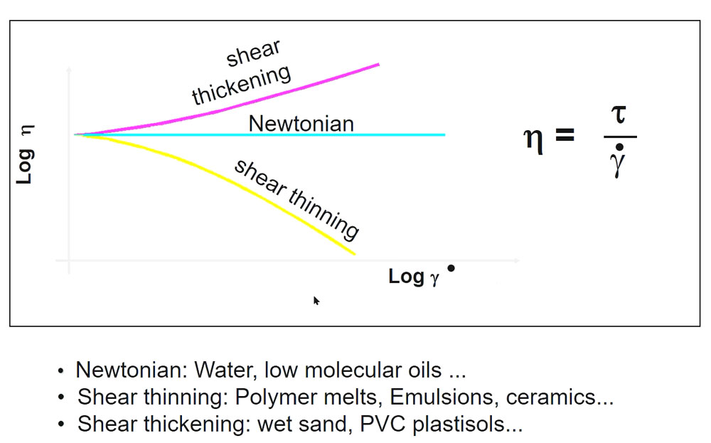 چسب ها نیز بر گرانروی تاثیر دارند و حتی ممکن است ویژگی جریانی دوغاب را از حالت نیوتنی به شبه پلاستیک تبدیل می کنند. اغلب چسبهای آلی، مولکولهای پلیمری با زنجیره بلند هستند. گرانروی دوغاب وابسته به درصد وزنی چسب ) c ( که طبق رابطه زیر به دست می آید{J.S.Reed, 1998;شریفی, 1386}.