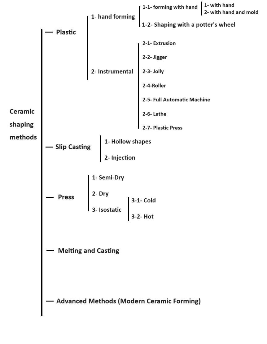 Ceramic raw materials have a high melting point compared to metals. for this reason, the melting and casting method which is the most common method of making glass and glass products and is also used in the manufacture of most metal artifacts, is less used in ceramics, because ceramic raw materials have different properties that affect Various methods have been used to shape their base.